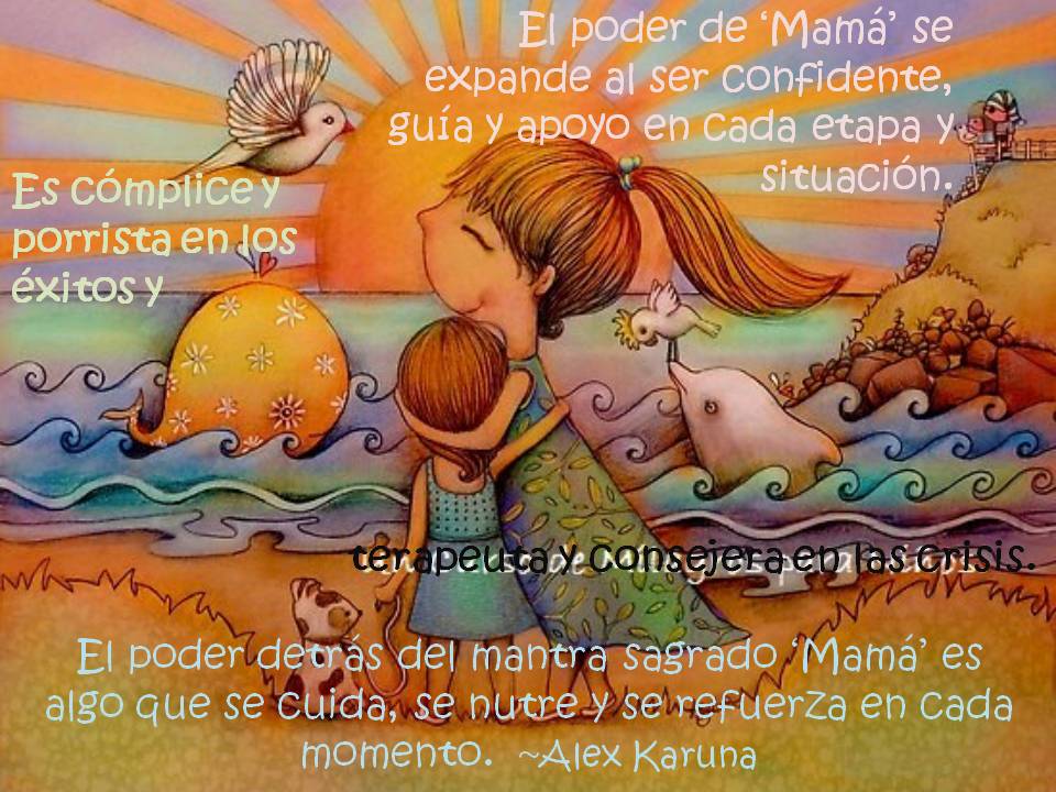 Cuando el niño(a) dice por primera vez ‘Mamá’, lo hace no como una referencia racional sino espiritual. ‘Mamá’ es el ser que lo cuidó durante meses en su vientre. ‘Mamá’ es quien pacientemente acompañó los momentos de llanto al verse en un entorno nuevo y doloroso. ‘Mamá’ es quien celebró cada mirada, sonrisa y sonido por el simple hecho de ver a la Vida desplegándose a través de ella en su bebé. A lo largo de nuestras vidas el mantra ‘Mamá’ nos lleva, al menos por un instante, a ese espacio sin miedo, sin necesidad, sin preocupaciones.